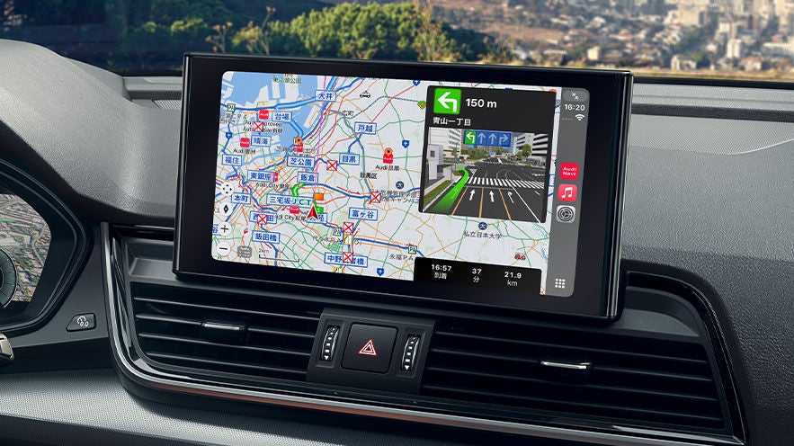 - Apple CarPlayのマップを表示しながら、Apple CarPlayのミュージックはもちろん、その他のオーディオソースの使用が可能です。