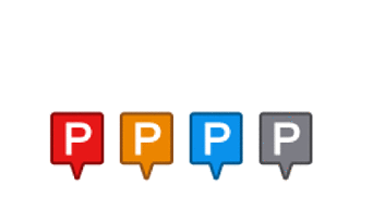 駐車場検索結果&満車情報がある駐車場をあらわします。選択すると、アイコンが大きくなります。<br>・赤:満車 ・橙:混雑 ・青:空車 ・灰:不明
