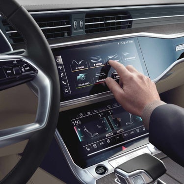 Audi A6は、デジタル時代にふさわしい新たなインターフェースMMIタッチレスポンスを採用。ボタンやスイッチをなくした2ディスプレイのシンプルなデザインはイグニッションをOFFにすればシンプルなブラックパネルとなって周囲に自然に溶け込み、インテリジェントな空間を演出します。