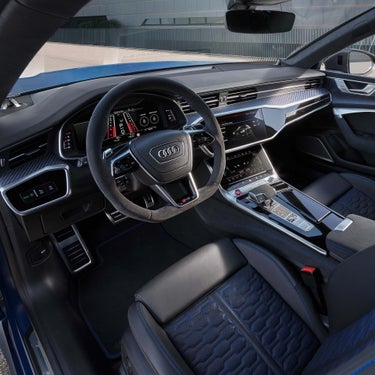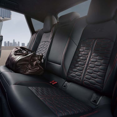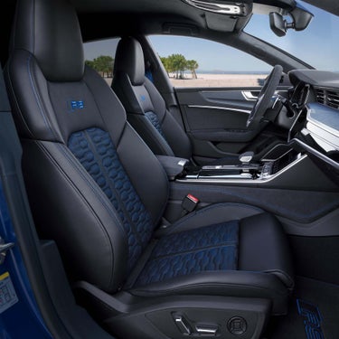 ドライバーズシートはもちろん、リヤシートでもゆったりと心を静められる空間であること。Audi RS 7 Sportback performanceでは、緩やかに弧を描く優美なルーフラインでエレガントな佇まいを追求しながらも、室内の居住性能を損なうことはありません。リヤシートのヘッドクリアランスや足元に余裕のスペースを確保するとともに、RSロゴが刻まれたバルコナレザーのリヤシートを取り入れています。