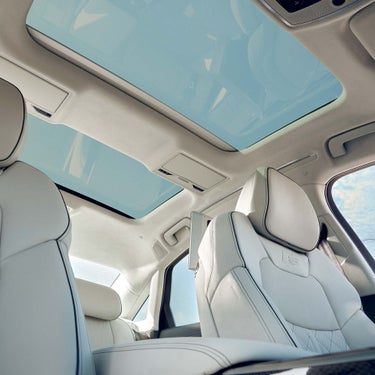 開放感あふれる開口部の大きな遮光ガラスを採用した先進的デザインのサンルーフです。電動で開閉やチルトアップの操作が可能。アドバンストキーによって外から開閉することもできます。快適で明るい室内空間を実現するとともに効率的に換気を行えます。ウィンドディフレクター搭載で、チルトアップやフルオープン時でも風切り音を軽減します。