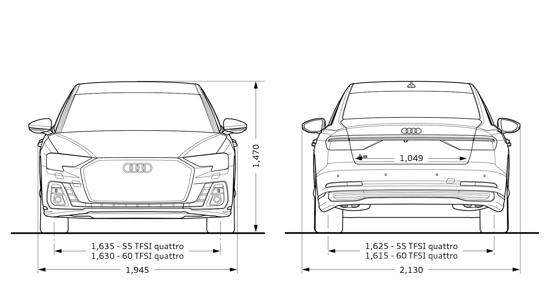 駆動方式 quattro (4WD)* ダイナミックオールホイールステアリング装着車の場合5.3mとなります。※表示の価格はメーカー希望小売価格(消費税込み)で参考価格です。販売価格はAudi 正規ディーラーが独自に定めていますのでお問い合わせください。