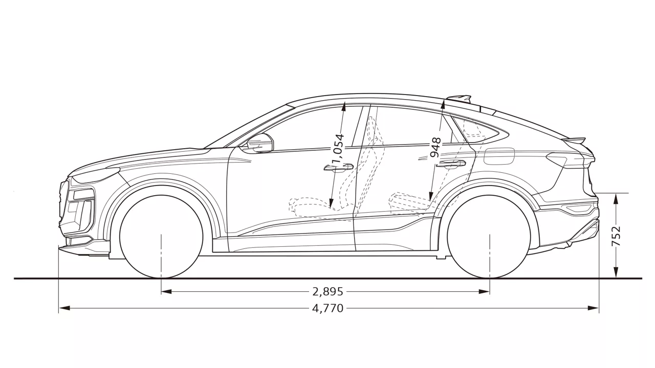 美しいルーフラインでエレガントな雰囲気を纏うAudi SQ6 Sportback e-tron。フロントは、アルミルックインサートが施されたシングルフレームグリル、マットクロームシルバーで仕上げられたバンパーと大型エアインテークで堂々たる表情に。張り出したホイールアーチがワイドなスタンスを強調する足元には5アームストラクチャーの20インチホイールを標準装備、オプションで21インチの大径ホイールを選択可能。Sロゴ入りのブラックブレーキキャリパーも装備し、ボディの内に秘めたポテンシャルを予感させます。
