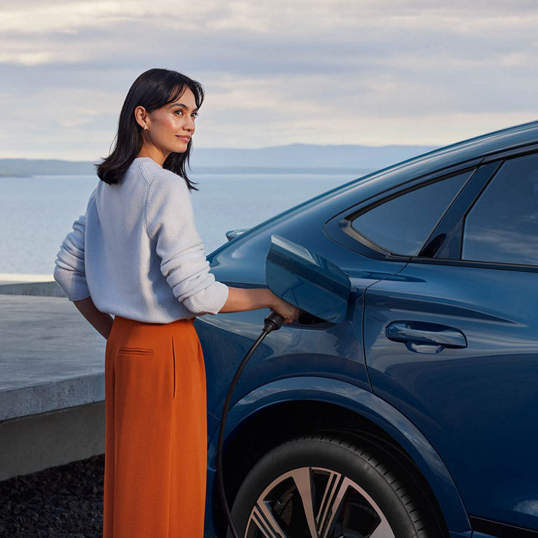 電気モーターと電動化されたブレーキコントロールシステムにより、運動エネルギーを電気エネルギーへと変換し、駆動用バッテリーにチャージ。ブレーキペダルを踏んだ時やアクセルペダルから足を離した時に作動し、エネルギーを有効活用して走行距離の向上に寄与します。走行状況に合わせて快適なドライビングと最適な回生レベルを調整するオートマチックモード、ステアリングホイールのパドルシフトから好みの回生レベルを選択できるマニュアルモードを備えています。