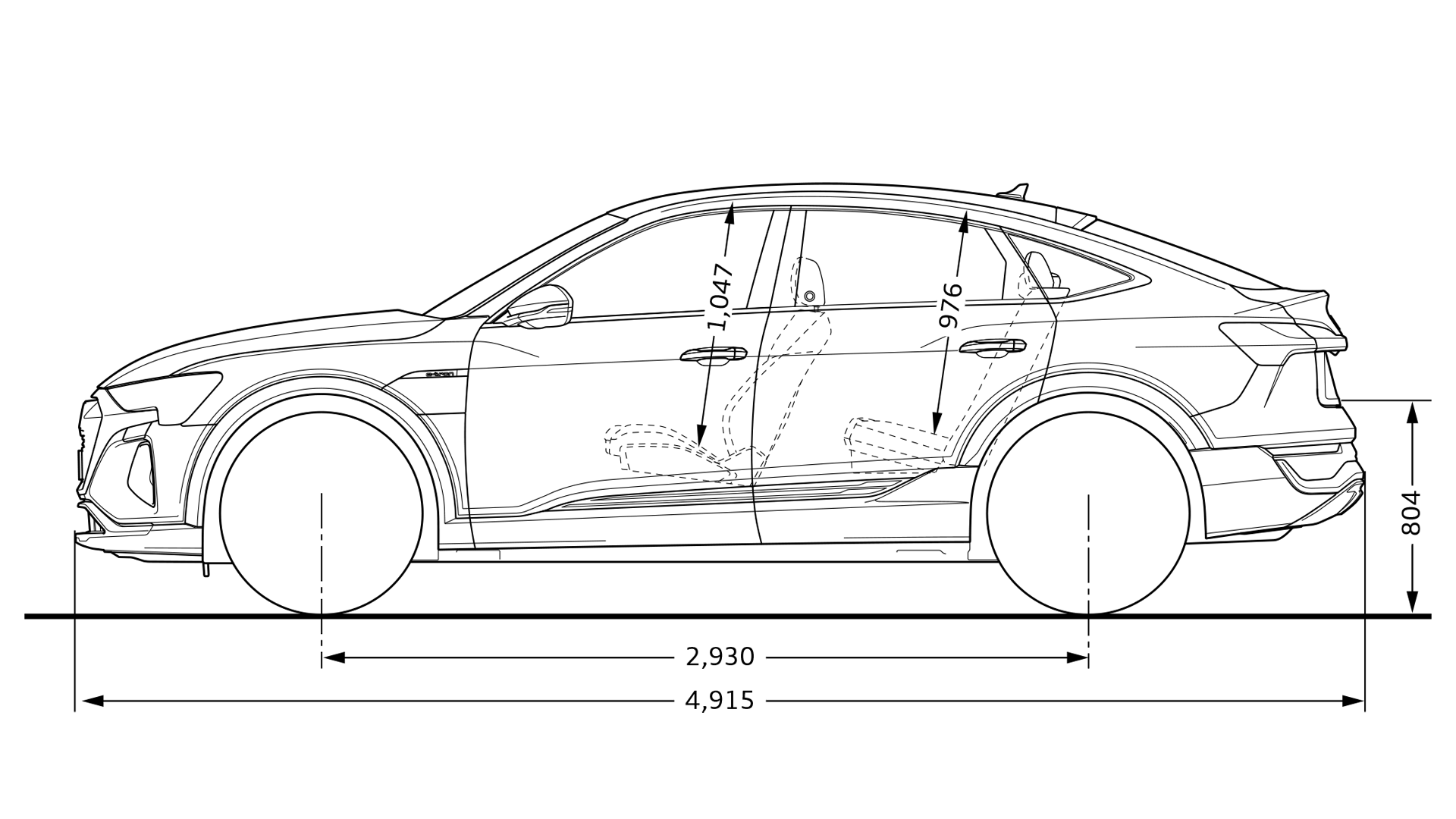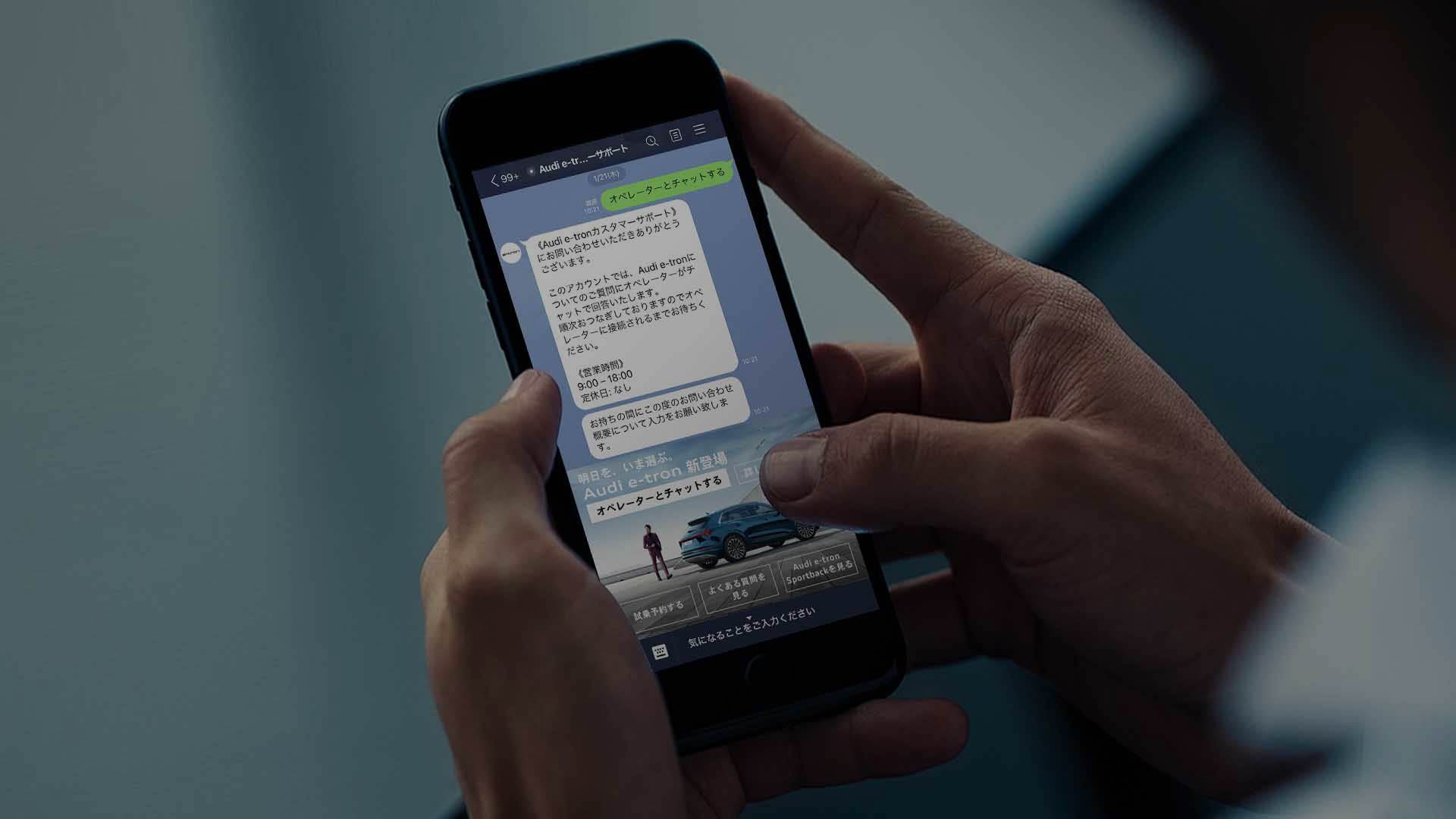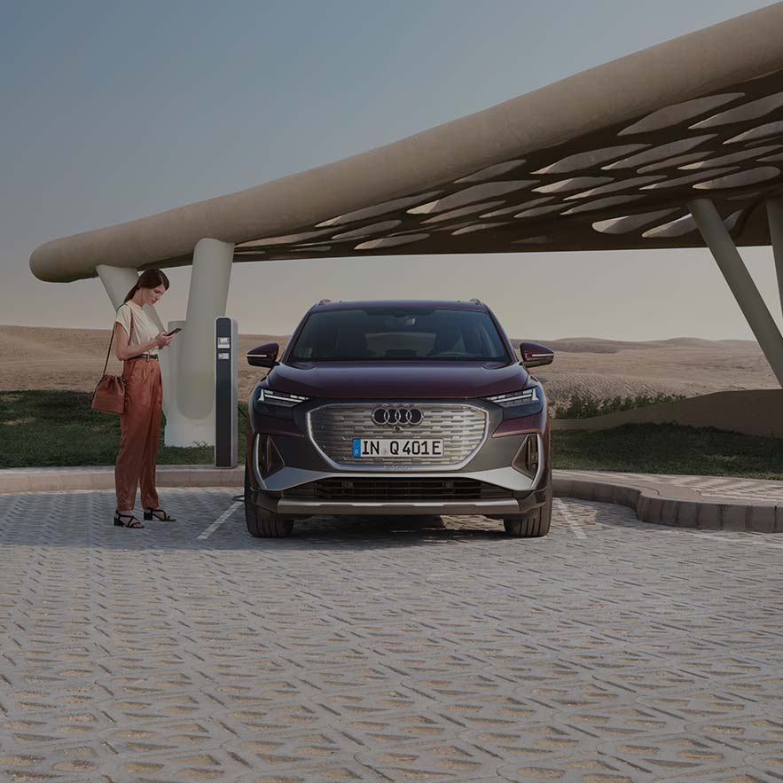 *1 Audi Q8 Sportback 55 e-tron quattro S line(レンジプラスパッケージ装着車)の場合。数値は一充電走行距離(WLTCモード)。国土交通省審査値。一充電走行距離は、定められた試験条件での値です。実際の走行時には、お客様の使用環境(気象、渋滞等)や運転方法(急発進、エアコン使用等)に応じて大きく異なります。WLTCモードは、市街地、郊外、高速道路の各走行モードを平均的な使用時間配分で構成した国際的な走行モードです。