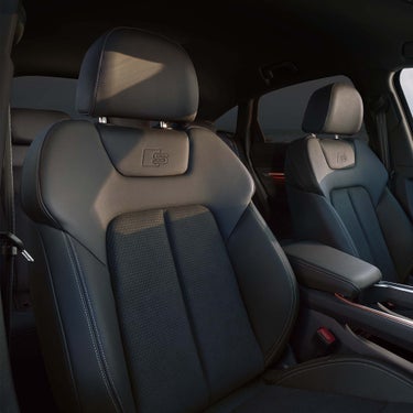 Audi Q8 e-tronのインテリアには、未来へ向けたサステイナビリティへの意志が随所に込められています。再生ポリエステル繊維を用いたダイナミカとレザーのスポーツシートに加え、プラスチック廃棄物を再生したシートベルトカバーを採用。高い質感と環境への配慮を両立しています。