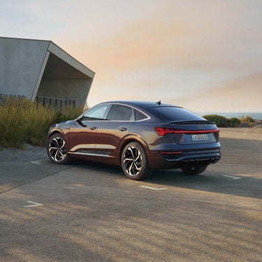 どの角度から見ても心に刻まれるAudi Q8 Sportback e-tronのフォルム。リヤエンドまで低く滑らかに弧を描く流麗なルーフラインがSportback特有の美しさを体現。サイドボディではブラックに塗り分けたサイドシルがパワーの源であるバッテリーの存在を視覚的に主張。乗降時に視界に入るBピラーにはモデルネームがクリーンなデザインで刻まれています。