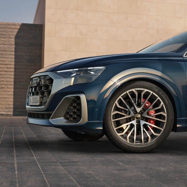 足元にはブラックメタリックポリッシュトのマルチスポークSデザイン23インチアルミホイール*をご用意。quattro®を主張する筋肉質なホイールアーチと共にパワフルなパフォーマンスを体現します。