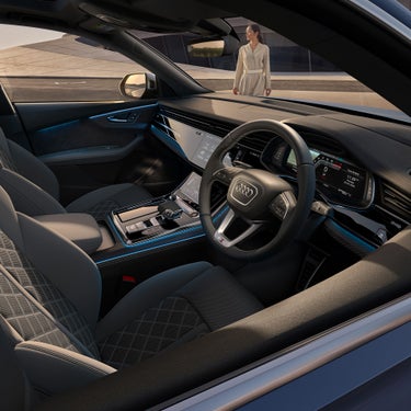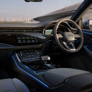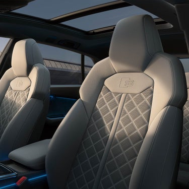 心躍らせるデザイン、ラグジュアリーな装備、インテリジェントなテクノロジーが融合したAudi SQ8のインテリア。ダイナミカ/レザーを標準装備したスポーツシートは、刺激的なドライビングの高揚感とこの上ない寛ぎ、どちらも存分に堪能できる空間を演出します。オプションでエレガントなバルコナレザーで仕立てたSスポーツシートもご用意。