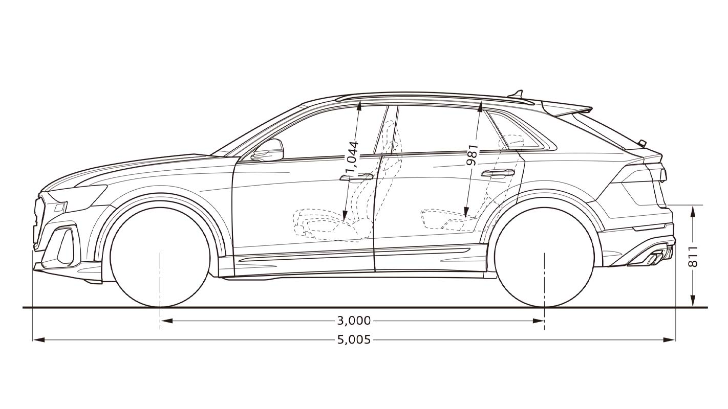 Audi SQ8は上質でスポーティな空間を演出するだけでなく乗る人すべてをもてなす快適性と実用性も兼ね備えます。リヤシートでは大人がゆったりと座れるヘッドクリアランスを確保し快適な居住性を実現しています。