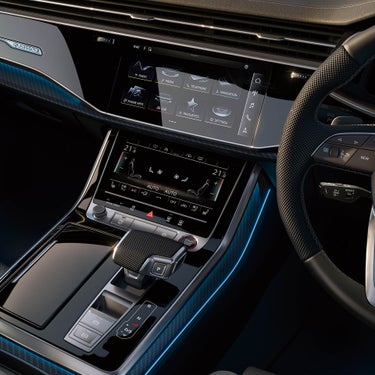 デジタル時代にふさわしいユーザーインターフェースであるMMIタッチレスポンスは、フラットな高解像度モニターで車両のセッティングやインフォテインメントを直感的に操作することが可能。グラフィックや振動、音によって、視覚、触覚、聴覚に明確な反応を感じ取れます。インフォテインメント用の10.1インチアッパースクリーンと、空調操作や手書き文字入力用の8.6インチローワースクリーンの2つのタッチディスプレイを搭載。イグニッションをOFFにするとスクリーンが漆黒のフラットなブラックパネルとなり、周囲のインテリアに溶け込みます。