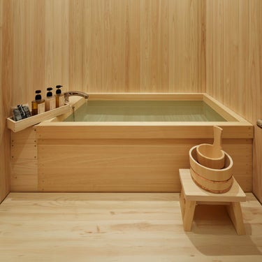 全室ヒノキ風呂を設置し、ヒノキの爽やかな香りに癒されます。