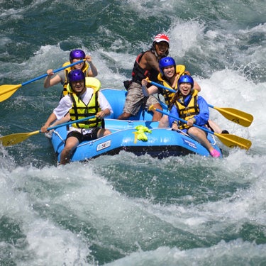 一緒にツアーへ参加する仲間と専用のゴムボートに乗込み、熟練インストラクターの指導のもと、清流に挑みます。