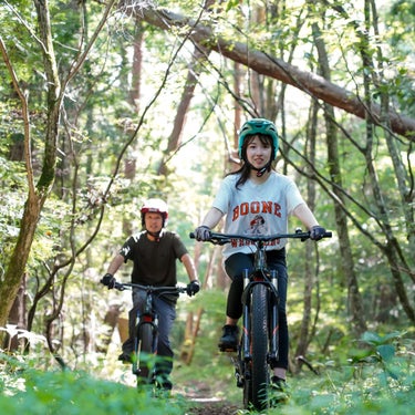 ハイグレードなマウンテンバイクをレンタルし、森の中を走ります。下りは本格的なトレイルもあり、程よいスリルも味わえます。