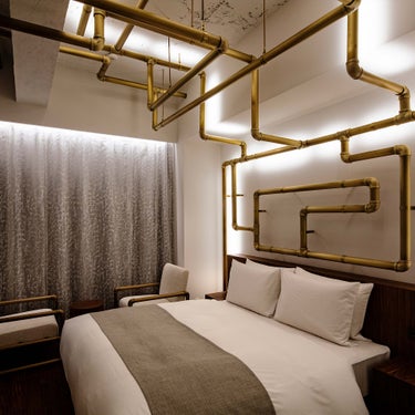 世界で活躍するアルゼンチン出身アーティスト レアンドロ・エルリッヒが初めて手がけた泊まれるアート作品。ヘリテージタワーの吹き抜けを縦横無尽に走る「ライティング・パイプ」をモチーフにした水道管が天井まで張り巡らされた空間では、美術館を独り占めしたような贅沢な時間をお過ごしいただけます。