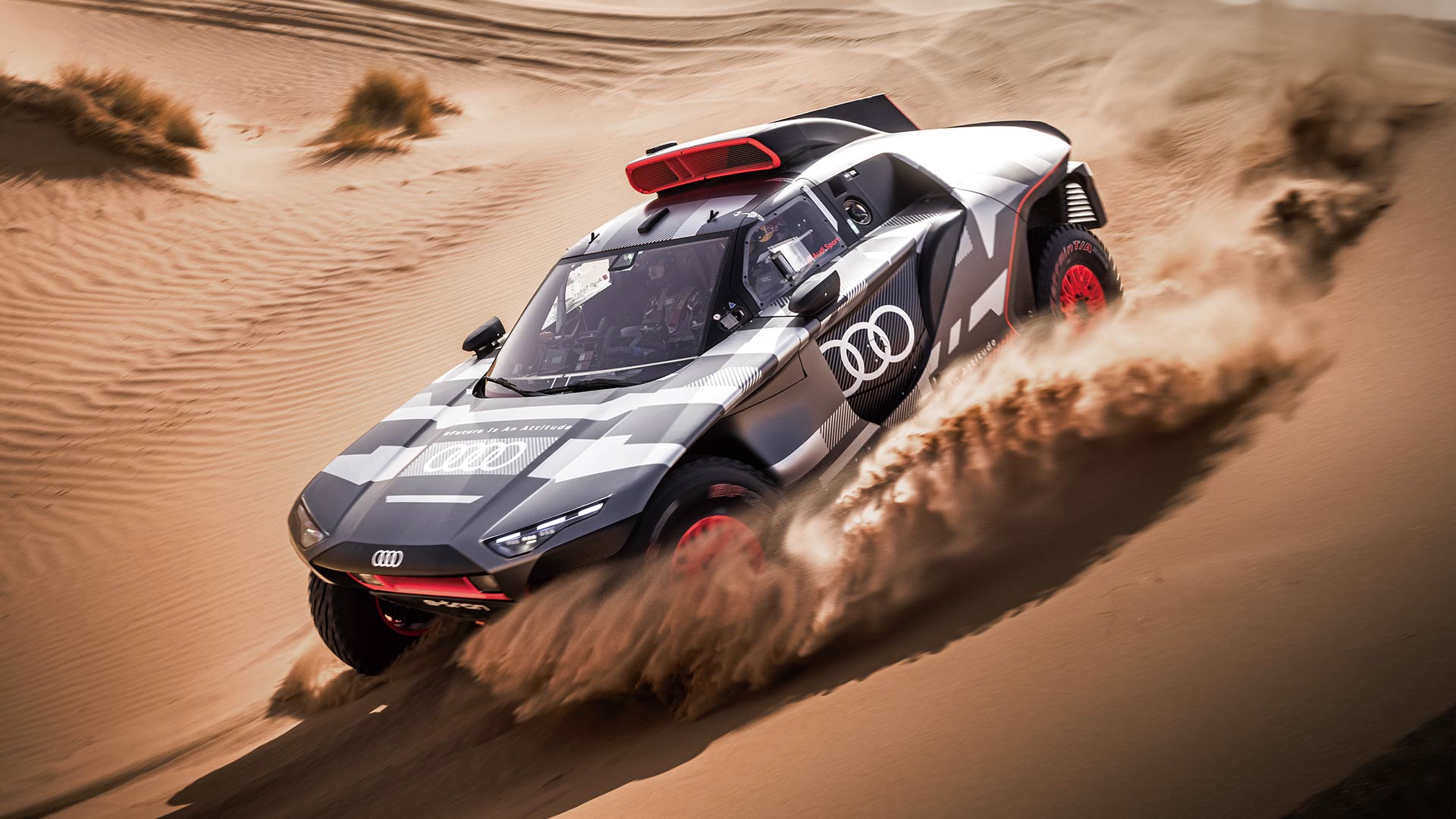 2022年より新たに新型の電動車を用いたダカールラリープログラムを開始しています。今年1月に行われたダカールラリーに参戦した3台のAudi RS Q e-tronは、24,000kmに及ぶ世界で最も過酷なオフロードラリーを走破した初の電動車として、新時代を切り開きました。そして3月に行われたFIA世界ラリーレイド選手権の第2ラウンド、アブダビデザートチャレンジでは、初優勝を達成。電動パワートレインと高電圧バッテリーを組み合わせたAudi RS Q e-tronは、気温は日陰でも40度を越え、路面は柔らかな砂地で走行抵抗が大きく、冷却システムにも高負荷の砂漠のラリーを制した世界初の電動車としてモータースポーツの歴史に名を刻みました。