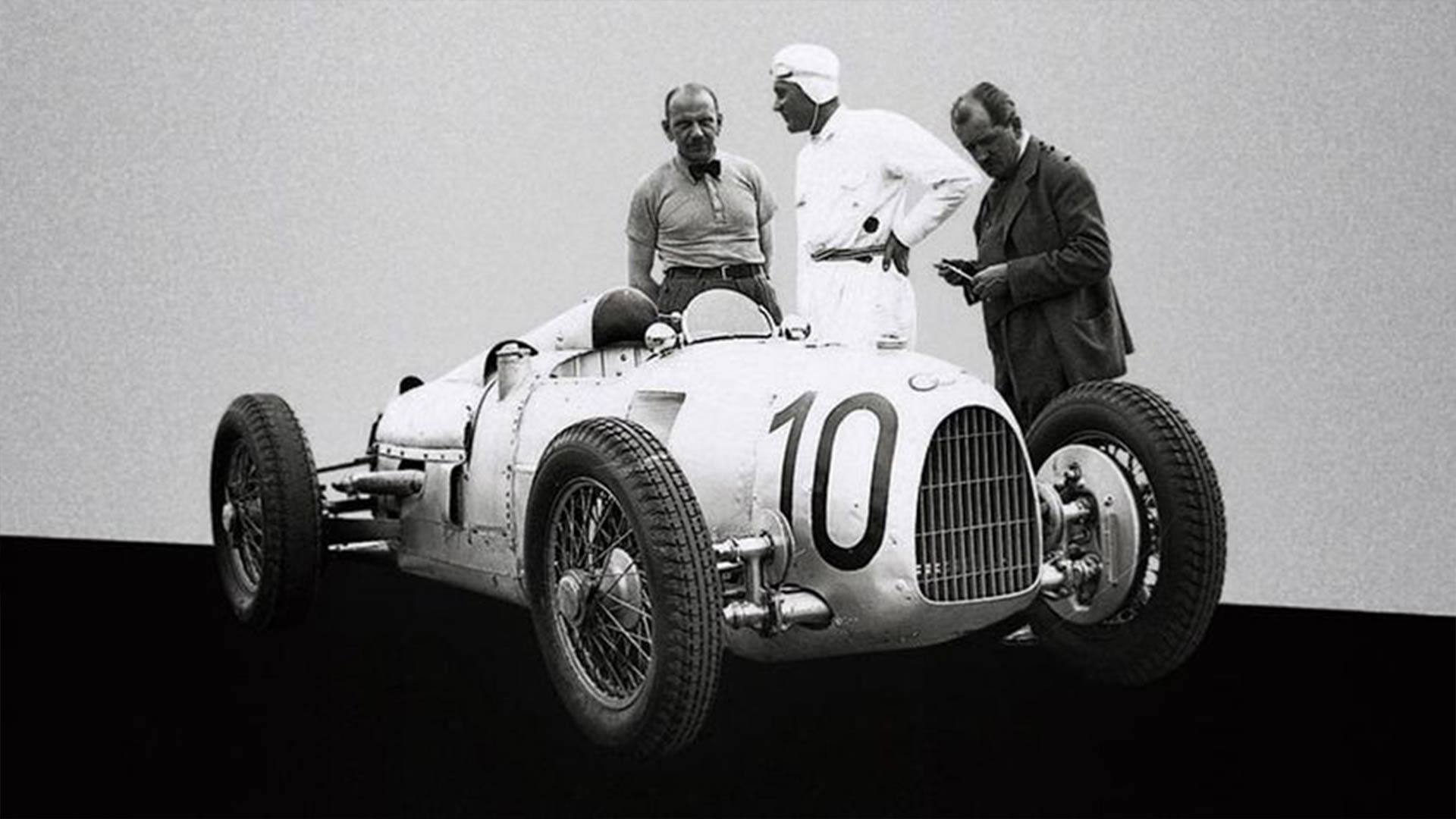 すべては、1人の天才設計者からはじまりました。1934年、革新的なレースカーの設計図を手にしたフェルディナンド・ポルシェがホルヒの工場を訪れます。そして誕生したのが、現在のフォーミュラカーの原型となる伝説のマシン、“シルバーアロー”。チューブラ・フレームのミッドシップに295psものパワーを生み出すスーパーチャージャー採用16気筒DOHCエンジンを搭載。グランプリ登場の初年にはハンス・シュトゥックI世がシルバーアローを駆り、世界速度記録など7つの世界記録を樹立しました。