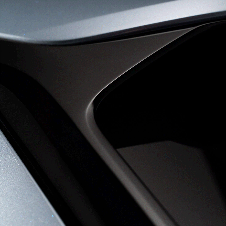 Cピラー上のフライングルーフとリヤのサイドシルが空気の流れを最適化