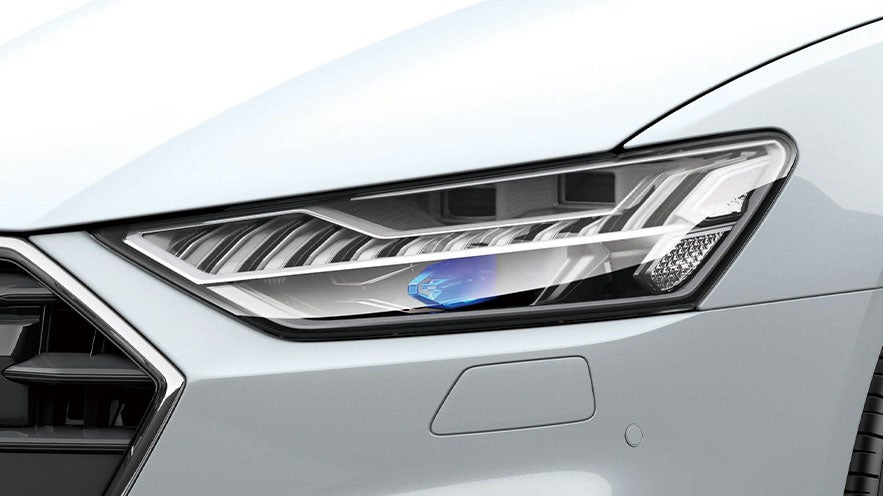 アウディレーザーライトは、70km/h以上で走行中にハイビームを補助し、ハイビームの照射距離を2倍に拡大することで、夜間の視界を飛躍的に向上させます。ハイビームアシスト利用時は、ハイビームが点灯して約1秒後に起動します。