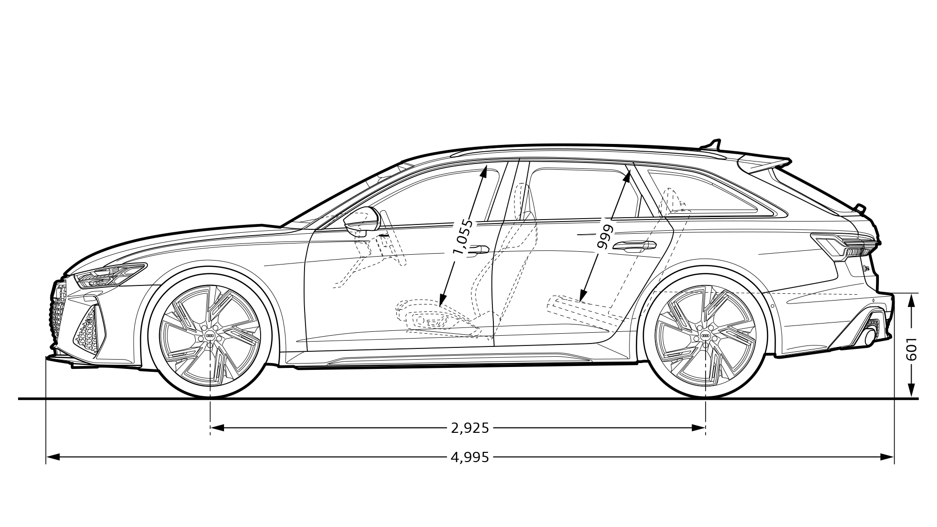 Audi RS 6 Avant performanceは、アスリートを思わせる引き締まったボディラインや後方に向かって、緩やかな弧を描く優美なルーフラインでエレガントな佇まいを追求しながらも、リヤシートの頭上と足元ともに余裕のあるスペースを確保します。3分割可倒式で、乗る人には快適を、荷物を載せる際には可変性の高い空間を。ゆったりとした心地の良い移動空間をもたらします。