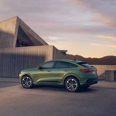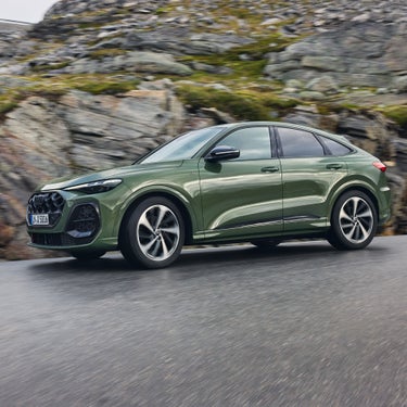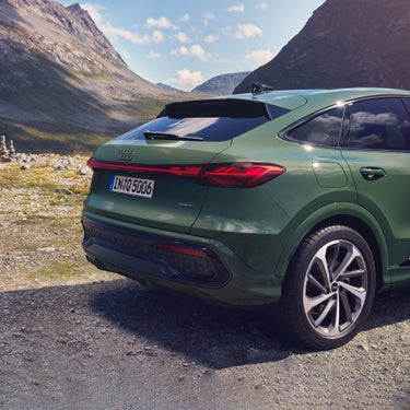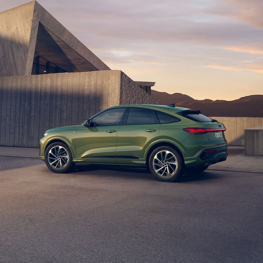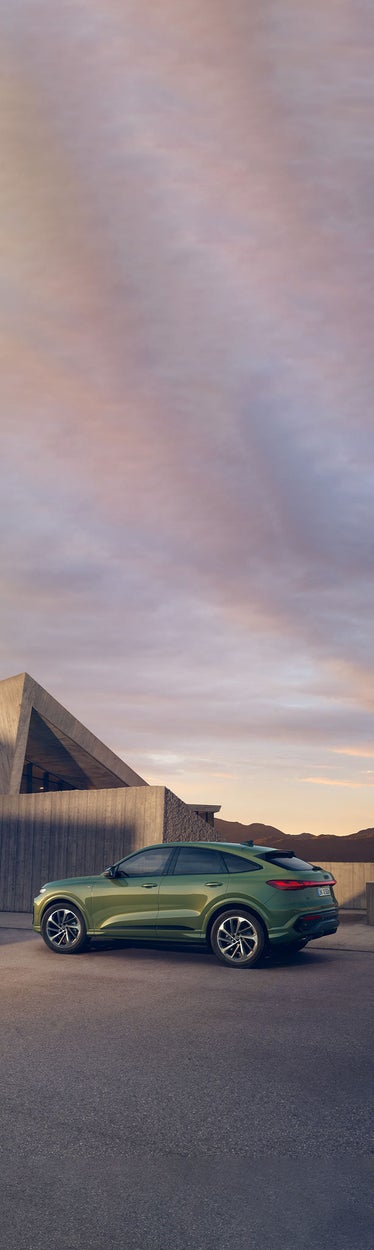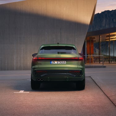 ひと目見てプレミアムSUVらしい精悍さを感じさせるフロントフェイス。高い位置に配したフラットでワイドなシングルフレームグリルには、ブランドを象徴する2次元デザインのAudi ringsが輝きを添えます。グリル下には大型エアインテークが配置され、スポーティなキャラクターを演出。鋭い眼差しのマトリクスLEDヘッドライトと相まって、ワイドな印象を際立たせます。S lineパッケージ*を選択すれば、シングルフレームグリルは大開口のハニカムメッシュになり、エアインテークは力強さを感じさせるワイドなデザインになります。