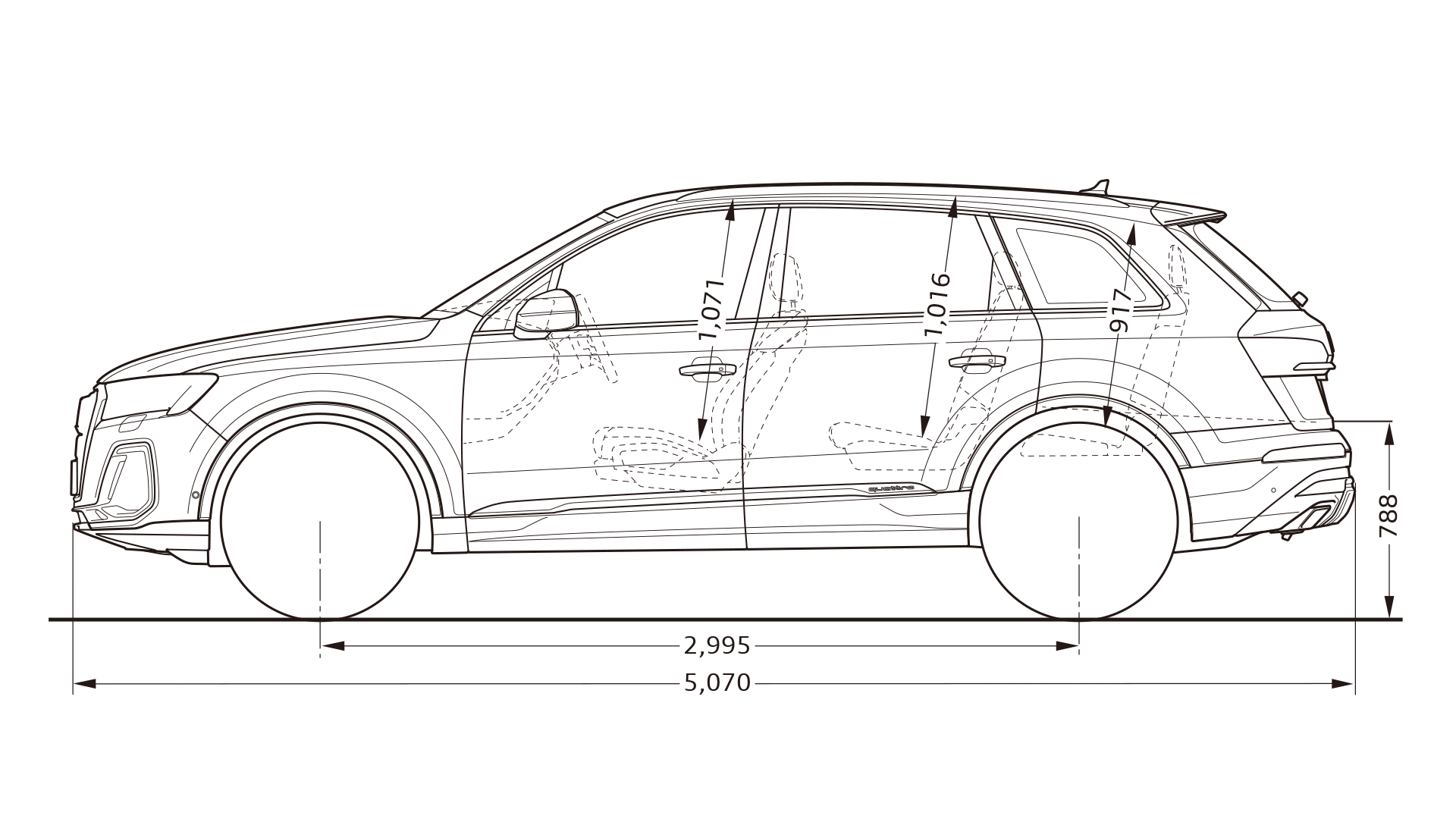 ラゲッジ容量 (ℓ) 780 / 1,908* エアサスペンション装着車の場合1,705となります。※表示の価格はメーカー希望小売価格(消費税込み)で参考価格です。販売価格はAudi 正規ディーラーが独自に定めていますのでお問い合わせください。