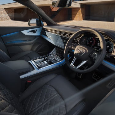伸びやかな室内空間は、ドライバーを強く意識してデザインされています。ボタンとスイッチを少なくすることで辿り着いた、フラットに洗練されたインテリアはあなたに贅沢な時間をもたらすことでしょう。あらゆるシーンに寄り添い、思いのままに使える居住スペースのフレキシビリティもAudi Q7の魅力です。7人乗り3列シート仕様は大人が十分に腰を落ち着けることのできるゆとりを確保しています。
