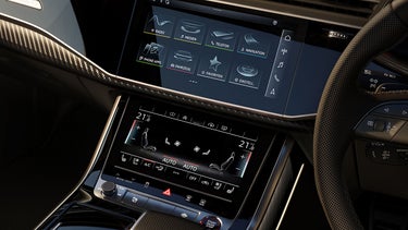 デジタル時代にふさわしいユーザーインターフェースであるMMIタッチレスポンスは、フラットな高解像度モニターで車両のセッティングやインフォテインメントを直感的に操作することが可能。グラフィックや振動、音によって、視覚、触覚、聴覚に明確な反応を感じ取れます。インフォテインメント用の10.1インチアッパースクリーンと、空調操作や手書き文字入力用の8.6インチローワースクリーンの2つのタッチディスプレイを搭載。イグニッションをOFFにするとスクリーンが漆黒のフラットなブラックパネルとなり、周囲のインテリアに溶け込みます。