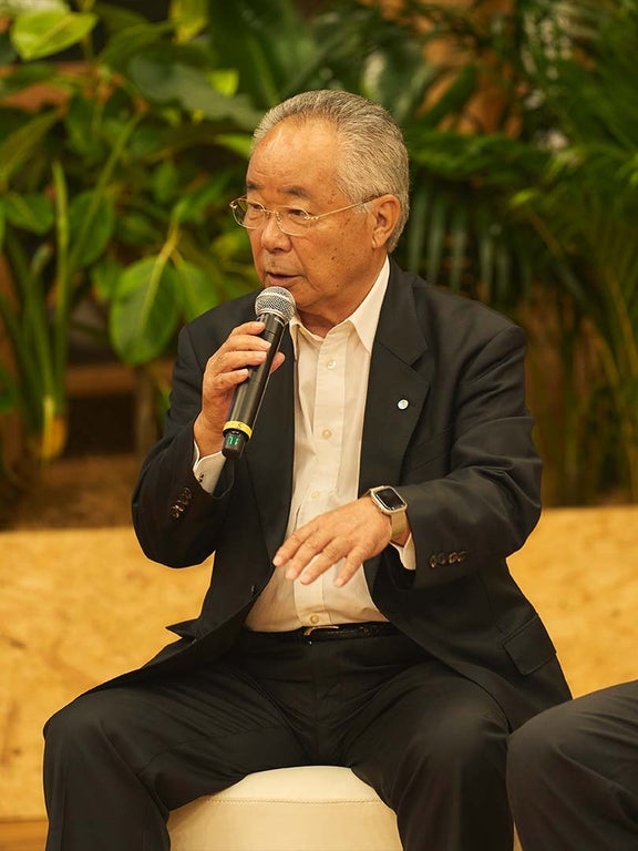ツアーの最後は屋久島町役場を訪問し、産官学で屋久島の未来のサステイナビリティについて話し合う「未来共創ミーティング」を開催しました。屋久島町 町長の荒木耕治氏、屋久島観光協会 ガイド部会長 中馬慎一郎氏、屋久島高校からは、惠美由紀教頭、斉藤武教諭、そして4名の生徒が参加しました。アウディ ジャパン ブランドディレクターのマティアスシェーパースが、アウディが電動化に向かう未来のビジョン、そしてなぜ屋久島を訪問したのかを話し、荒木町長からは屋久島町の水力発電の活用状況や島内の電気自動車の普及目標などの説明がありました。また、屋久島高校から参加した惠教頭からは、屋久島高校の普通科に設けている環境コースを選択している生徒が取り組む活動の紹介がありました。屋久島のサステイナビリティに関するパネルディスカッションも行われ、電気自動車の普及を進める荒木町長や屋久島の環境を熟知する中馬氏、島の将来を担う屋久島高校の生徒、そして、東京からツアーに参加したメディアから様々な意見が飛び交い、有意義な議論が行われました。